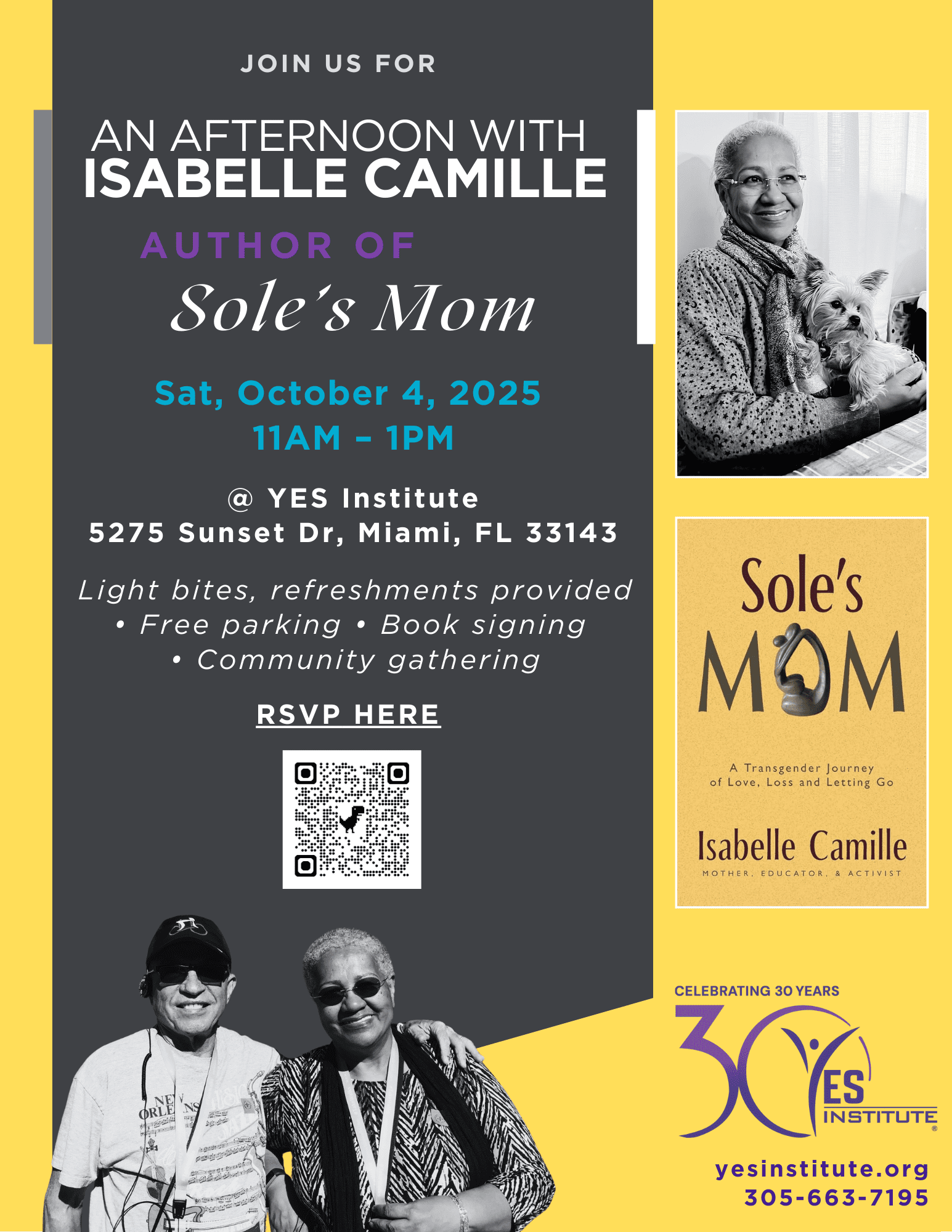 Join us for a special community gathering at YES Institute, featuring author Isabelle Camille and her powerful book Sole’s Mom, which chronicles her journey raising a transgender son. Isabelle will be joined by her son, Sky Guilbaud, who will share his perspective and experiences. Together, they’ll open space for heartfelt conversation, connection, and learning. To make the afternoon even more special, Isabelle and her family will be serving home-cooked Haitian food. Come be part of this warm, welcoming event that celebrates love, resilience, and community.